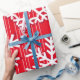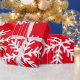 Snyggt, modernt och trendig mönster med vitt snöflingor på en färgstark bakgrund. Perfektens julklapp.