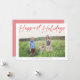 Detta moderna julkort har en stor kalligrafisk hälsning i rött över en vit bakgrund och ett enda horisontellt foto. Denna design är modern men ändå elegant och fungerar bra med många olika foton. Baksidan har röda och vita diagonala ränder för att samordna med den övergripande färgpaletten. **ALLA färger i denna design är anpassningsbara.