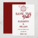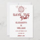 Detta moderna röda retro diskotek groovy bröllop rädda datum kan anpassas med din information i modern typografi. Designad av Thisisnotme