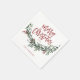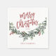 En modern röd skript God Jul grönska firande servett med fet skrift och akvarellgirlang med blad och bär.