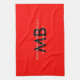 Modern röd svart monogram initialer kökshandduk