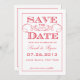 Modern röd virvel Save the Date-inbjudan: Använd dessa eleganta och vintage-inbjudningar för att inbjuda dina gäster till din drömbröllop. Anpassa färger, text och teckensnitt, och lägg till dina egna bilder. Ändra evenemangsinformationen så att den passar din bröllopsdetaljer! AntiqueChandelier©