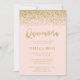Glamourösa rosa och falskt guld glitter Quinceanera 15-års födelsedagsinbjudningar. Designen är platta tryckta illustrationer/grafik - INTE ÄKTAT GULDGLITTER.