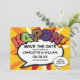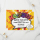 Anpassa med era namn och detaljer för att tillkännage datumet för er speciella händelse. Serietidning pop art-tema modern, rolig retrodesign, perfekt för bröllop, möhippor, baby shower, dop, förlovningsfester, årsdagar, examen, födelsedagsfirande och andra speciella händelser under året! En cool, trendig och rolig design som sätter BAM-ZAP-POW i er dag. Designad av Thisisnotme©
