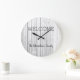 Modern rustic Welcome Family namn, vit grått-skiftläge, väggklocka. Du kan enkelt ändra texten och lägga till ditt namn.