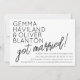 Ett söt-sans-serif-teckensnitt är elegant i kontrast till avslappnadens handskriftsskript som lyder "har gift!" i detta bröllopsmeddelande och inbjudan. Använda mallen fält att lägga till dina egna uppgifter och känna dig fri att ändra färg, typsnitt, layout på det sätt du vill ha det!