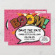 Anpassa till namn och information om datum för din speciellare händelse. Tecknad bok popkonst temat modern, roligtens återdesign, perfekt för bröllop, möhippor, babyduschar, baptismer, förlovningsfester, årsdag firande, studenten, födelsedagsfest och andra speciellare under året! En coola, ett trendig och en roligt som gör att du kan ta med dig det där skumma vinklet. Designad av Thisisnotme©