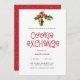 Använda den här vackra roligten Cookie Exchange-julkort som är värd för din julklapp party. Den innehåller en modern, rolig text som säger "Cookie Exchange" och en festiv vattenfärgsberryv. Baksidan är en matchande julröd julklapp med gulter i blek. Perfekt för ditt helgdag-kort för Party inbjudan vid jul.