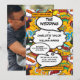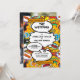 En roligt, coola och trendig retro tecknad bok inspirerade till en bröllopsinbjudan som sätter horan, skon, pow in i vilket superhjältepares firande-evenemang som helst. Den omvända funktionen har ett speciellt foto. Designad av Thisisnotme©