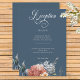 Elegans och enkelhet, med en liten bit romantik gör bröllopsmottagningskortet unikt. En mjuk dammblått bakgrund sätter upp scenen på denna konstruktion, omgiven av en vacker trädgårdsskåra blommigt ram av dammig rosa, grädde, blekens gult och teal. Skapat av Farmhouse Press.