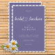 Elegans och enkelhet gör den här inbjudningskort för möhippan-lunchen unik. En mjuk, dammig lila lavender-bakgrund är i centrum på inbjudan, omgiven av ett enkelt vitt ram. Skriptet tillför en aning spelbarhet med sitt hjärtformade mellanrum. Skapat av Farmhouse Press.