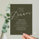 Mark the beginning of your forever with elegance using our romantic contemporary theme wedding reception elopement dinner celebration invitation card, "Happily ever after dinner". Perfect for couples extending their joyous occasion, this invitation exudes sophistication with a hint of playfulness, setting the stage for a memorable event. Adorned with a timeless modern script design, with white text on olive green background, it adds a touch of refined charm to your festivities. Crafted by TeeshaDerrick, this invitation promises to beautifully capture your love story.