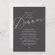 Markera början på er för evigt med elegans med vår romantiska samtida tema bröllopsfest för elopement middagsfirande inbjudningskort, "Happily ever after dinner". Perfekt för par som vill förlänga sin glada tillställning, utstrålar denna inbjudan sofistikation med en touch av lekfullhet och sätter scenen för ett minnesvärt evenemang. Prydd med en tidlös modern scriptdesign, med vit text på kolgrå bakgrund, ger den en touch av förfinad charm till er fest. Skapat av TeeshaDerrick, löfter denna inbjudan att vackert fånga er kärlekshistoria.
