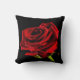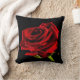 Ett vackert röd ros med vatten faller på ett svart bakgrundsfoto dekorativ kudde.