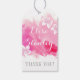 Den moderna vattenfärgen stänk rosa blommar i abstrakt är en märkre i presenten i blommigt bröllop med en handmålad vattenfärg Tack med stänk i i ton struktur och rosa, blommor i vitt och shock rosa och text i vitt och rosa. Den här avslappnaden för elegant och snyggt i bröllop är en perfekt för hela anpassadet för vår, sommar eller fall/höst bröllop. Observera att detta bara är en vattenfärgsbild och inte en riktig struktur.