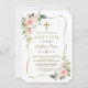 Modern Rosa blommor Guld Ram-baptism Inbjudningar