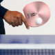 Svart text visas på den här rosa pingpongpaddeln. Du kan redigera texten för att visa ett lämpligt monogram och namn. Det borrade metall-utseendet är teckningar.
