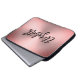 Rosa laptop sleeve har ett borstat metall. Visningen är ett svart skript som du kan redigera för att visa ett namn- eller ett anpassningsbar-meddelande.
