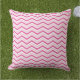 Färgfull, ljusstark och modern schevron utplånad utomhuskudde i shock rosa, ljus rosa och vit.