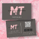 Ett modernt affärskort för svartvit, vit och rosa minimalistisk personlig för alla. Ett enkelt och professionell sätt att presentera ditt företag. Anpassa med företagets QR-kod och information för att skapa ditt eget unika elegant vita affärskort. Anpassa ännu mer med anpassningsbarna färg bakgrund eller teckensnitt. Anpassa dina egna social-medieikoner till kostym efter dina behov.
