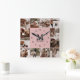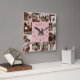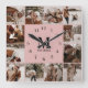 Modern Rosa-familj 12 Photo Collage Monogram Fyrkantig Klocka