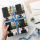 Modern, Rosa Flower blommigt studenten klass 2021 Wrapping Papper, med en rosa och svart ram framför ditt foto. Baksidan har ett annat foto och mer information om student.