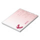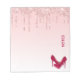 En modern utformning av trendiget på ett anteckningsblock. Bakgrunden har en bild av mousserande rosa glitter droppar, längs toppen. Resten av bakgrunden är en delikat pastellfärgad övertoning vid rosa färg. Ett par högklackade stilettos lägger till en snyggt på rosan.