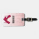En modern utformning av trendiget på ett bagagemärke. Bakgrunden har en bild av mousserande rosa glitter droppar, längs toppen. Resten av bakgrunden är en delikat pastellfärgad övertoning vid rosa färg. Ett par högklackade stilettos lägger till en snyggt på rosan.