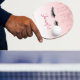 En pingpongpaddel med modern utformning av trendiget. För dem som vill förmedla en luft av klass och elegans. Designad med en bakgrund som ger en bild av mousserande droppar rosa glitter. Resten av bakgrunden är en delikat pastellfärgad övertoning vid rosa färg. En illustration av ett par svarta ögonfransar kompletterar designen.