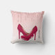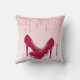 En modern utformning av trendiget på en kudde. Bakgrunden har en bild av mousserande, rosa, droppning, (faux) glitter längst upp. Resten av bakgrunden är en delikat pastellfärgad övertoning vid rosa färg. Likaså illustrerad med ett par högklackade stilettos med rosa.