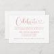 Modern rosa guld och vit (färgerna kan ändras) bröllopsinbjudan har en stilren typografidesign med chic calligraphy-skrift och en hjärtaccent. Den enkla och eleganta anpassade texten kan anpassas för att inbjuda gäster att "Fira" bröllopet, inklusive mottagningsnamn, adress och ankomsttid.