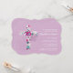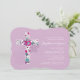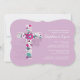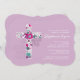 Samtida dopinbjudan som presenterar lilor, turkosblått & uppsättning för blom- blommor för rosor en arg på en ljus lavendellilabakgrund. Bläddra inbjudan över för en matcha blom- bakgrund för ett extra speciellt handlag. Vår moderna dopinbjudan eller christeninginbjudan för ett flickadop är tillgängliga i vårt shoppar också för en pojke.