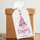 Modern rosa boll Julgran, svarta stjärnor och ord God jul i chic, skräddarsy dessa vackra märkre eller fester till märkre för vilken jul som helst tillfälle.