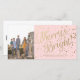 Anpassa det här moderna, snyggt, vackra vågrät Julhälsningskort designat med faux guld-text Merry och Bright med konfirmering av en modern rosa-bakgrund. Observera att guld är ett färg-tryck och inte ett egentligt guld-folie. Byt ut mallens bilder mot lodräts favoritfoto och ändra all mallinformation. För bästa resultat använda högupplöst bilder. *Fotomall kredit: Fotografi © Storytree Studios, Stanford, CA Matching Postage Frimärke finns här: