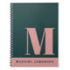 Modern Rosa, Mörk grönt monogramanpassningsbar Anteckningsbok
