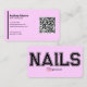 Upptäck trendig och enkla modeller för Modern Rosa Nail Technician Business Card, perfekt för skönhetsalonger och manikurister. Anpassa ditt eget anpassningsbar-kort med affärsinformation och QR-kod. Tillgängligt i kvantiteter mellan 100 och 50 000, med standardstorlek 3,5 x 2,0 tum och alternativ för både hörnnormalläge och rundat kant.