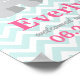 Snyggt- och nyfödda baby-kalvar med ljusa rosa hjärtformade stänk, en modern bakgrund mönster av akvblått och vitt chevron poster, grått för rand första anpassningsbar och födelsedatum för baby och för namn.