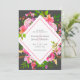 Dina gäster kommer att svepas bort med skönheten hos dessa vattenfärgliga trädgårdsblommor. Den här designen har en kaskad av blommor som accentueras av elegantens anpassningsbar-typografi. Den omvända sidan har en mjuk rosa färg. Lägg till informationen om bröllop för att slutföra utseendet.