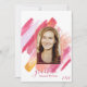 Enkelt och elegant, denna moderna rosa och guld målade penseldesign bakom ett bågfoto med guld gräns är perfekten för alla student till inbjudan vänner och familj till party!