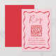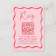 Modern rosa och röd vågig ram QR-kod RSVP Tilläggskort