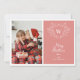 Sprid julglädje med detta eleganta och moderna julkort med en vit linjekonst misteltoe-design som ramar in en klassisk vapensköld som lätt kan anpassas med dina initialer på en modern ljus korallrosa bakgrund. Lägg till ett av dina favoritfamiljeporträtt på vänster sida av detta julkort och ett andra på baksidan.