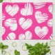 Modern Rosa och White Doodled Heart Valentines day Kökshandduk