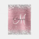 Modern Rosa Ombre Foil Silver Glitter Monogram Fleecefilt