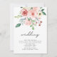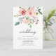 Modern Rosa Peach-blommigtar skriver Bröllopsinbjudan. Om du lägger till din QR-kod på din bröllop-webbplats på baksidan blir det här ett bekvämt alternativ för dina gäster till OSAN och du kan se alla detaljer utan att du behöver separata OSAS- och informationskort. En informell elegant anger stil för sidhuvudet med all information som är stilistigt liten under och Vattenfärg och persikofärgade blommigtar som gränsar till överkanten. Anpassa enkelt din information.