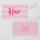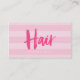 Det här affärskortet för snyggt har en bakgrund för diskettenhet i rand i skuggor av rosa och ord "Hair" i teckensnittet för rosa penselskript. Den är idealisk för hårstilister/hårfrisörer/hårsalonger. Anpassa den genom att ersätta platshållartexten. Om du vill ha fler alternativ, till exempel att ändra teckensnitt, klickar du storlekt på knappen "Anpassa". *Observera att Zazzle Watermark som visas i zoomförhandsvisningen INTE visas på den slutliga tryckta produkten © Rosewood and Citrus