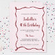 Denna söta, moderna rosa- och röda födelsedag är perfekt spelar ingen roll för milstolpen. Med en ljus rosa bakgrund kan inbjudan ha en röd, hand plockade gräns och röd och svart typografi som lätt kan anpassas med dina party-detaljer.