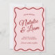Modern Rosa Red Bright Funky Bold Retro Bröllop Spara Datumet