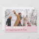 Personlig med julkort med ett stort foto. En rosa gräns grund på helgdag-kortet med god jul skrivet i bunt men elegant vitt brev och ett Julhälsningar skript med röd pensel.
