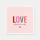 Dekorera bord med dessa moderna Rosa Red Heart Party Pappra Napkins. Var och en har en modern utformning med ord "kärlek" i stor typografi skapat i färg av pastellkorallets rosa, pastellernas rosa, rött och grått. Texten är "Glad Alla hjärtans dag" i handskrivet skript i trendiget och ett litet rött hjärta. Anpassadets bakgrund för rosa. Klicka på Anpassa mallalternativet om du vill ha andra ord eller fraser.