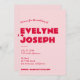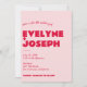 Den här bröllopsinbjudan är en perfekt för bröllop om du tittar en elegant unik och lättredigerbar inbjudan. En elegant unik enkel enkel inbjudan till en minimalistisk gräddmall för bröllop. Vilket har en ljust varm bakgrund för rosa. Och den röda magentan fet brud's and groom's first namn och handskriven röd text . och anpassadet citerar i baksidan " kom för kärlek, stanna för party" . Prisvärd och det är också digital elektronisk e-inbjudan om du vill skicka den med text eller e-post. All information är anpassade genom att klicka på knappen för anpassning. Ta det och gör det till ditt så att du gör inbjudan förlovad och upphetsat.